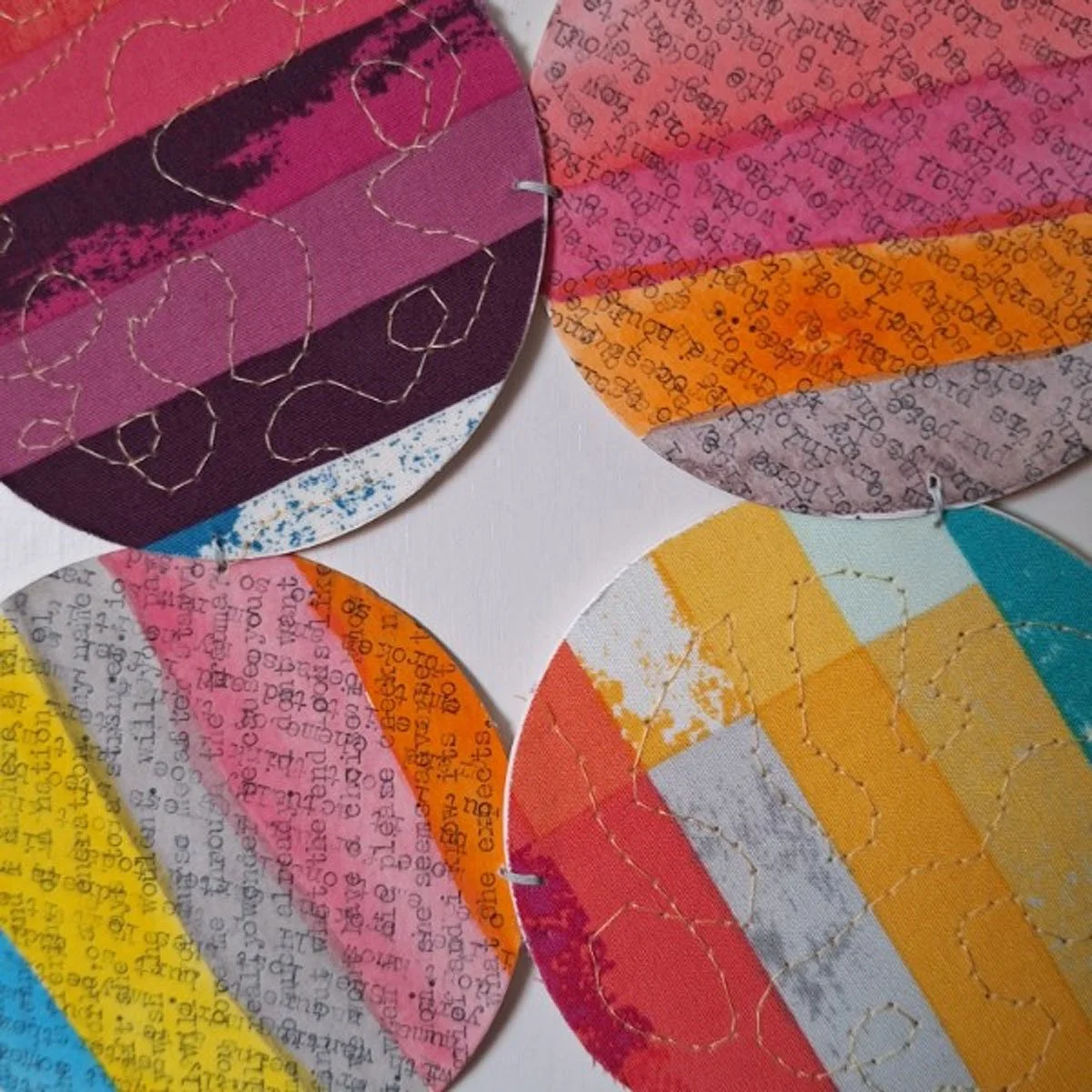 Charissa Lucille’s new solo exhibition, Vibrant Fibers, features mixed media artworks combining colorful cotton quilts and paper zines.