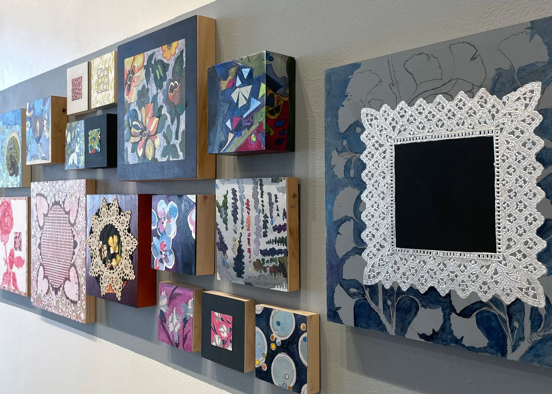 In Bits & Pieces, Marlys Kubicek contemplates time’s passing and creates new artwork from unusual materials found in her art studio. This exhibition emphasizes items of value that have been saved, lost, and re-found, including her grandmother’s unused quilt squares. “My mother saved them, and I have saved them,” Kubicek said. “It’s time to make something meaningful with them.”