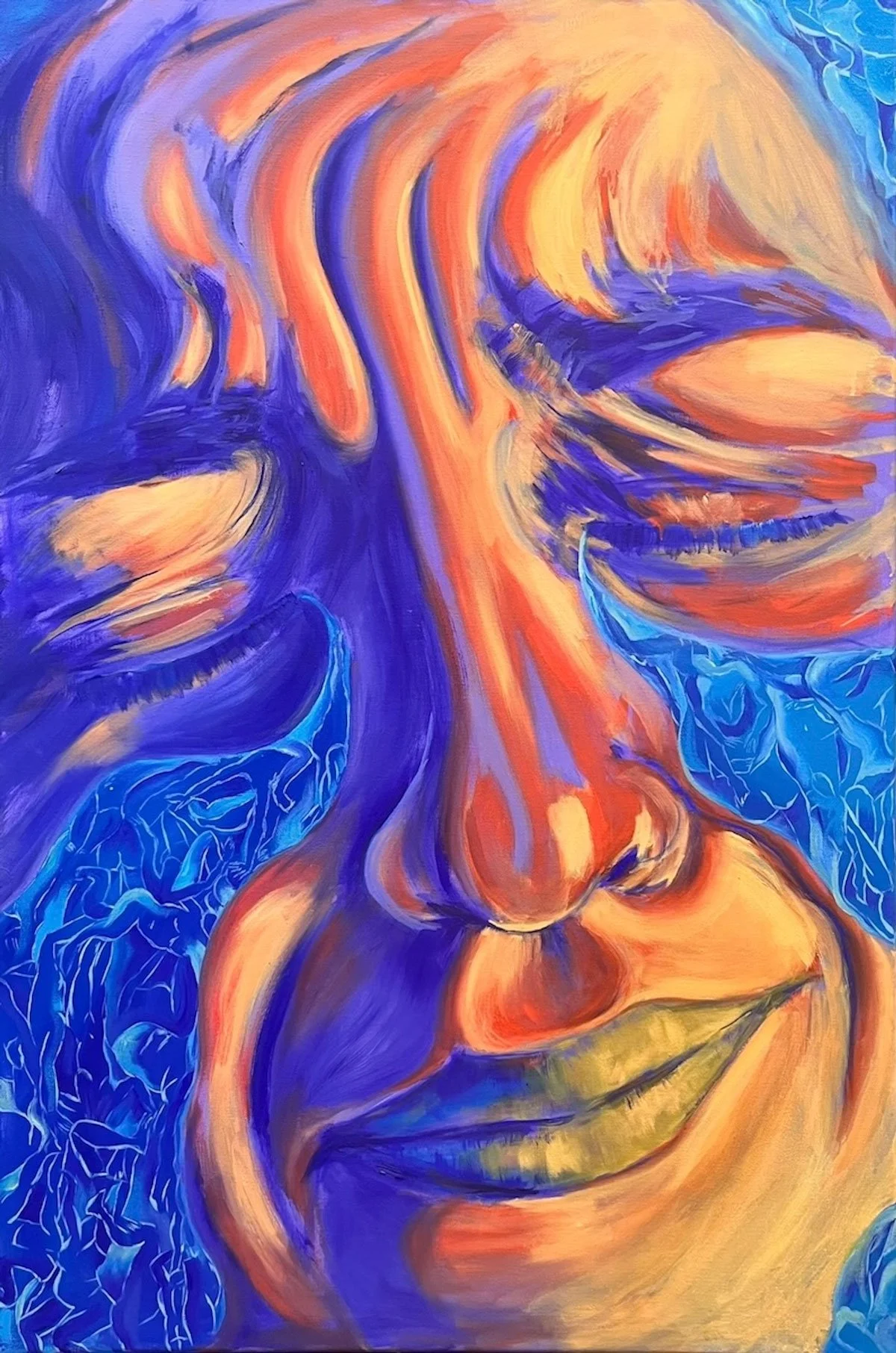 Each piece is deeply relational, based on Marisa’s growing practice of sharing space with loved ones (including herself), in which the intimacy of being seen can happen in ways our nervous systems both fear and ache to experience. It is in this container that Marisa captures video of people existing in the ways they feel free: dancing, laughing, cuddling, crying. From this process of documentation, she pulls still images of bodies in motion to use as references for these paintings.