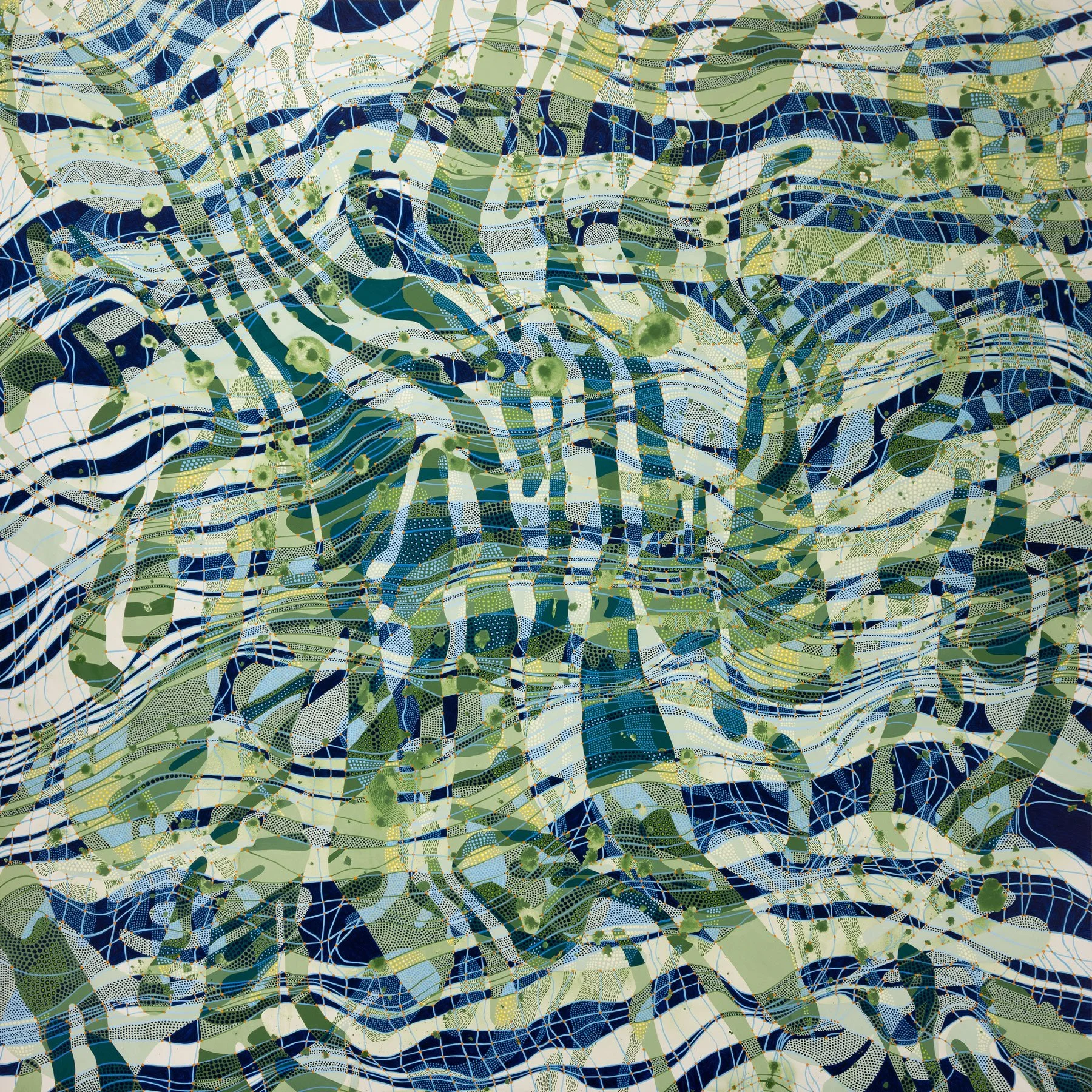 Patterns We Carry, a debut solo exhibition by Lynda Schlosberg features a new series of abstract paintings exploring repetition, memory, and the interconnection of personal and collective systems.